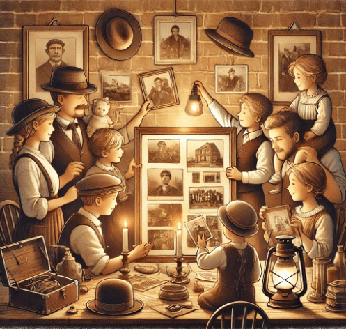 For kids, turn your story into an activity. Have them draw pictures of what they think your ancestors looked like or acted out a funny scene. Imagine their laughter as they pretend to milk a cow while dodging a curious chicken!